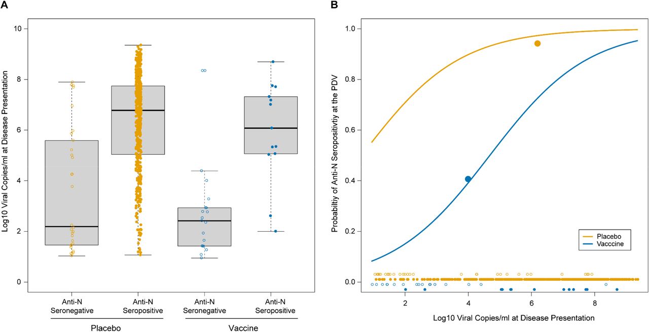“For any given viral copy number, the odds of anti-N seropositivity were 13.67 times higher for the placebo arm than the vaccine arm.”
