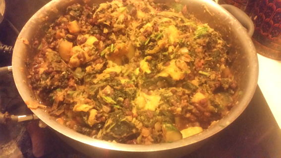 Remove from heat, and stir in 3/4 of the coriander leaves. Serve over cooked rice, quinoa or couscous, and garnish with remaining coriander.