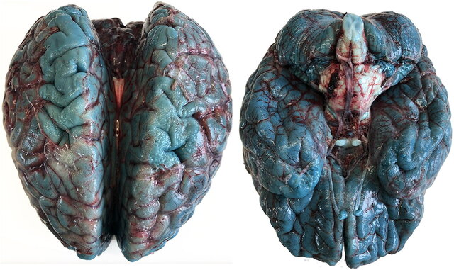 The most well-known side effect of methylene blue is striking but reportedly benign: it turns urine, skin and mucous membranes blue-green. And because it readily crosses the blood-brain barrier and is then selectively trapped in the brain, where it rapidly reaches concentrations 10-20 times higher than in the blood, it stains the brain blue, too, as doctors conducting autopsies have documented: